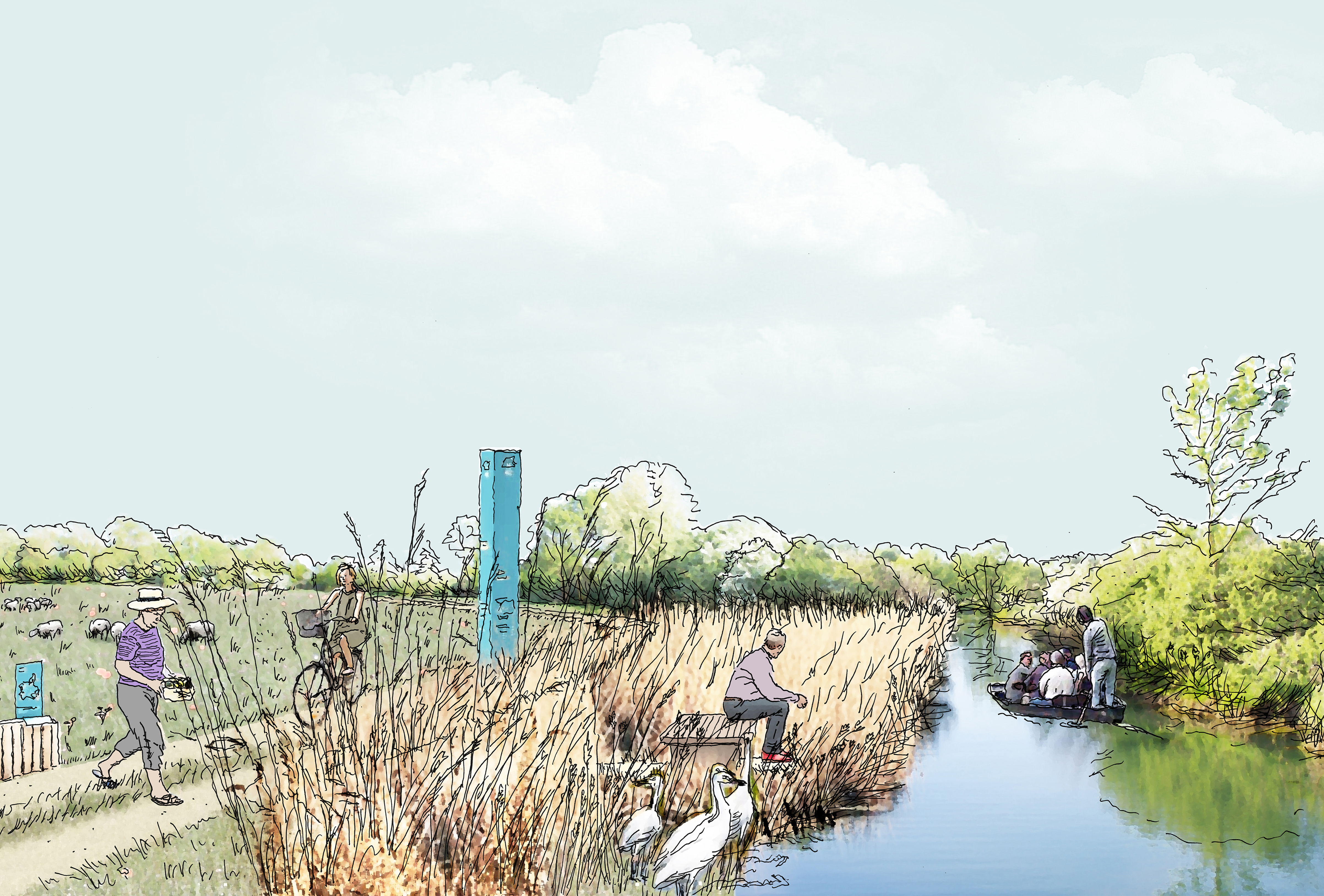 L’élaboration du plan guide, partagé par l’ensemble des élus et services techniques associés a été l’occasion d’imaginer de nouveaux modes d’aménagement vertueux grâce à l’invention de stratégies pour chaque entité paysagère, permettant au territoire d’acquérir une résilience face aux conséquences du réchauffement climatique, mais aussi une capacité à infléchir celui-ci en renforçant les puits à carbone maritime constitués par les marais. Une dynamique d’autant plus intéressante qu’elle offre une nouvelle attractivité à travers le retour d’un paysage naturel riche en biodiversité et représentatif de l’identité de la Charente-Maritime.
